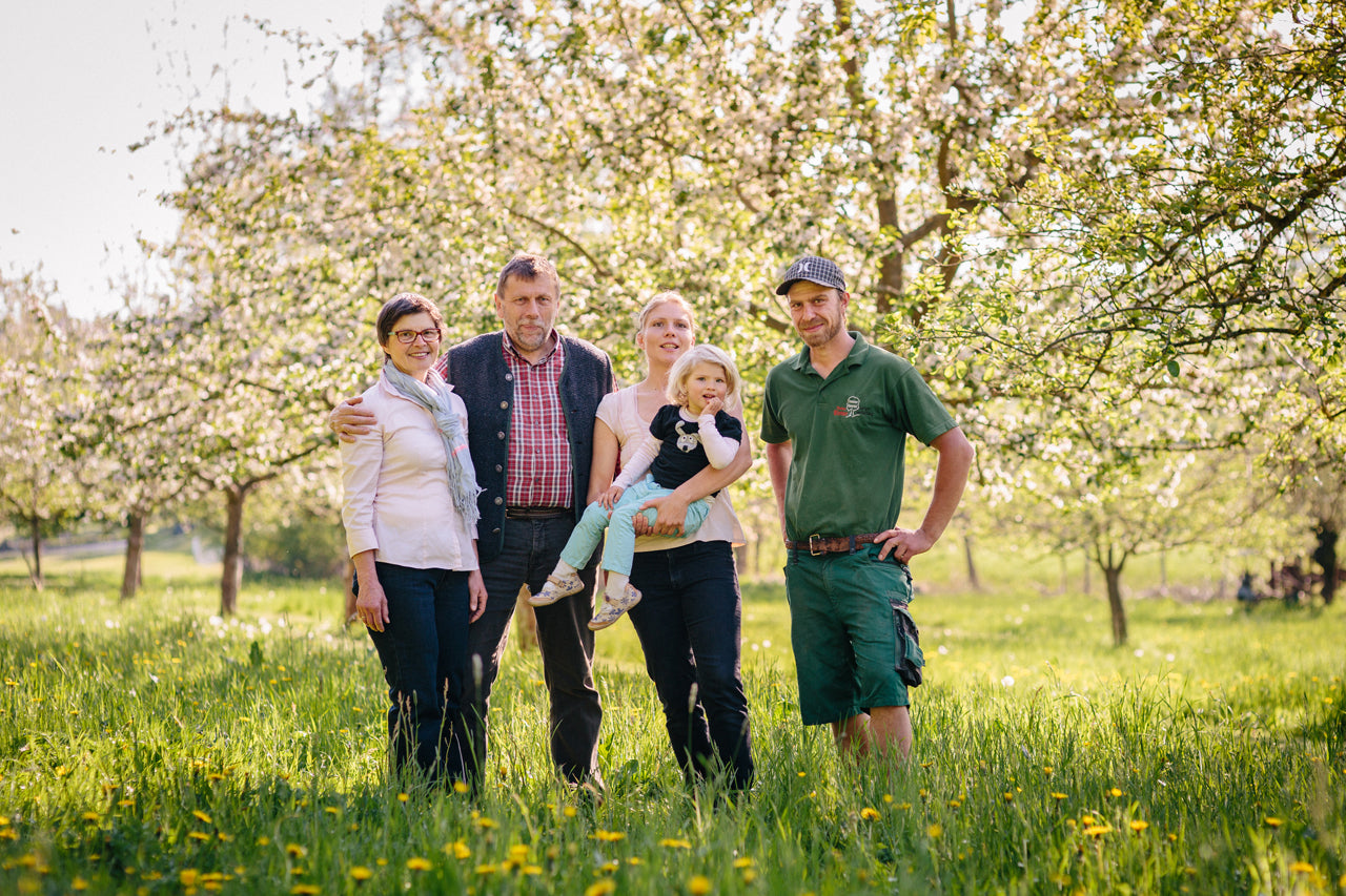 Georg and Marianne converted their farm to organic in 2000. They still find this exciting to this day: “It is exciting and at the same time relaxing to cultivate your land organically in the middle of an intensive agricultural environment. My motivation is to prove that the intelligent management of orchards not only has a beneficial effect on the landscape, on biodiversity and on soil, water and climate protection, but can also be economically worthwhile. With the cultivation of old apple varieties with transparent, honest working methods at all times and the processing/marketing of allergy-friendly apples and the naturally cloudy, full-fruit juices, we occupy a market niche and create a high-quality food range.”