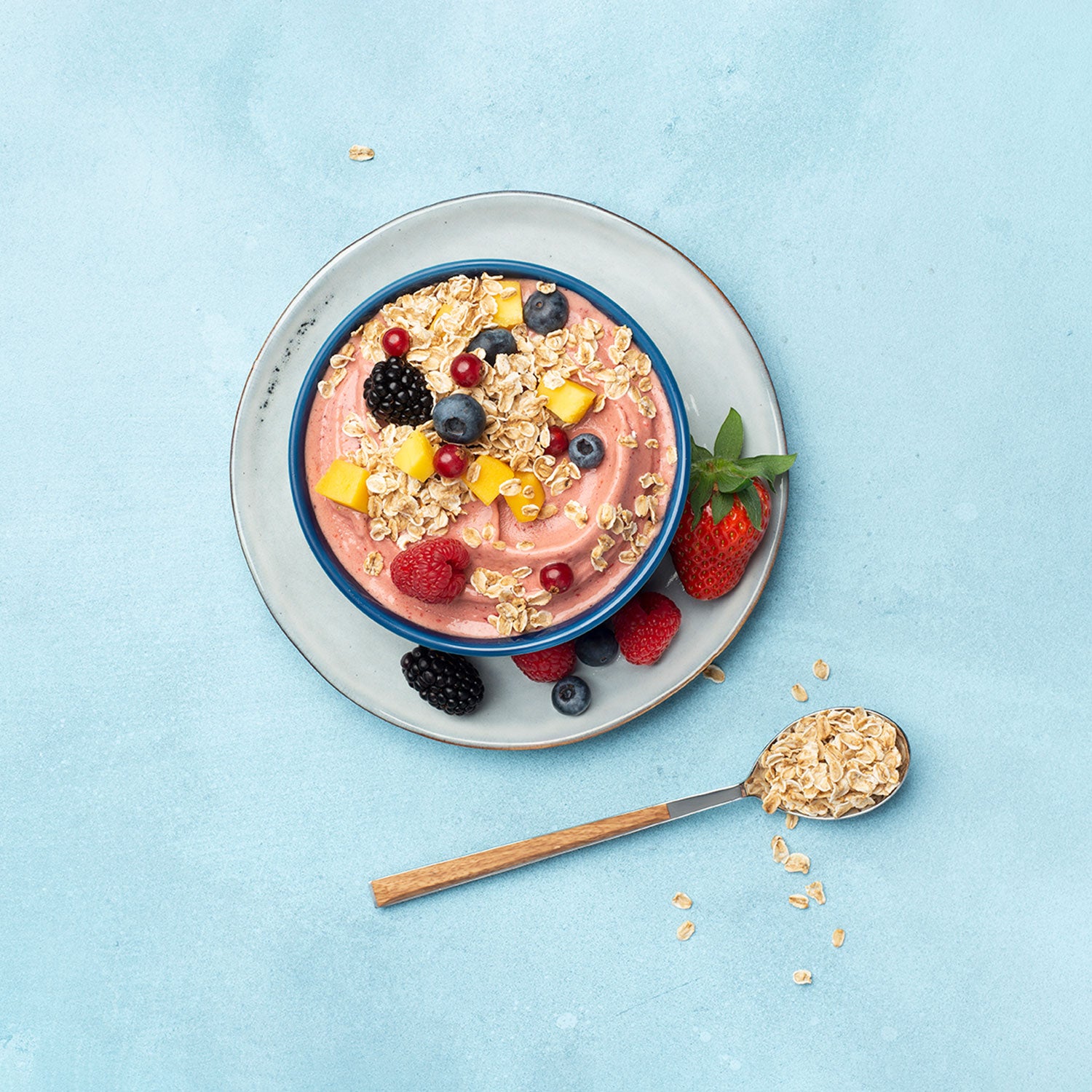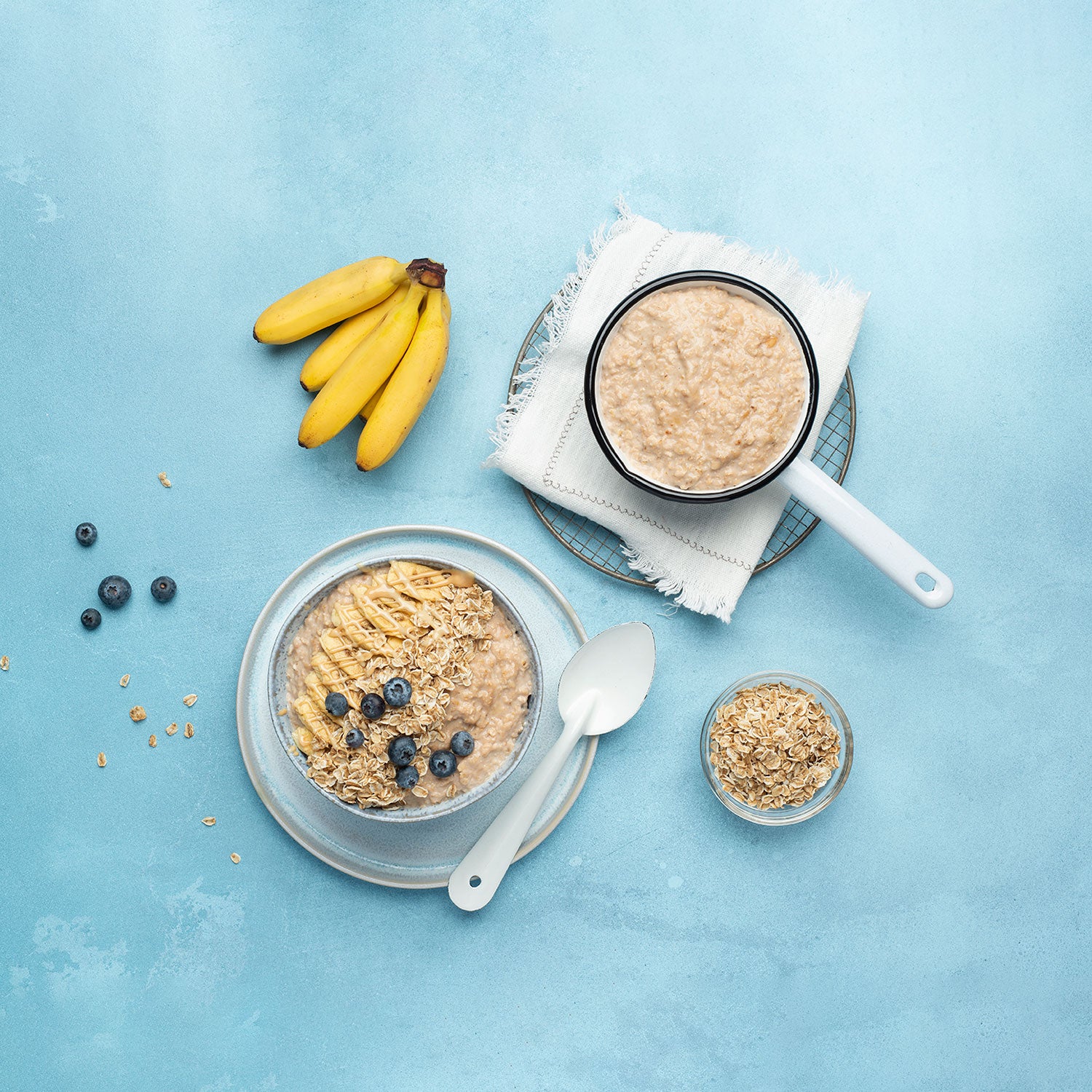 Oats are filling. If you eat a portion of oatmeal for breakfast, you won't need anything else until lunch! The oat beta-glucan not only helps you with your cholesterol levels, but also keeps you fuller for longer. It produces a gel film in the stomach that slows emptying. This leads to a longer-lasting feeling of satiety and a lower calorie intake. In addition, the fiber releases the peptide hormone YY, giving the body a stronger feeling of satiety.