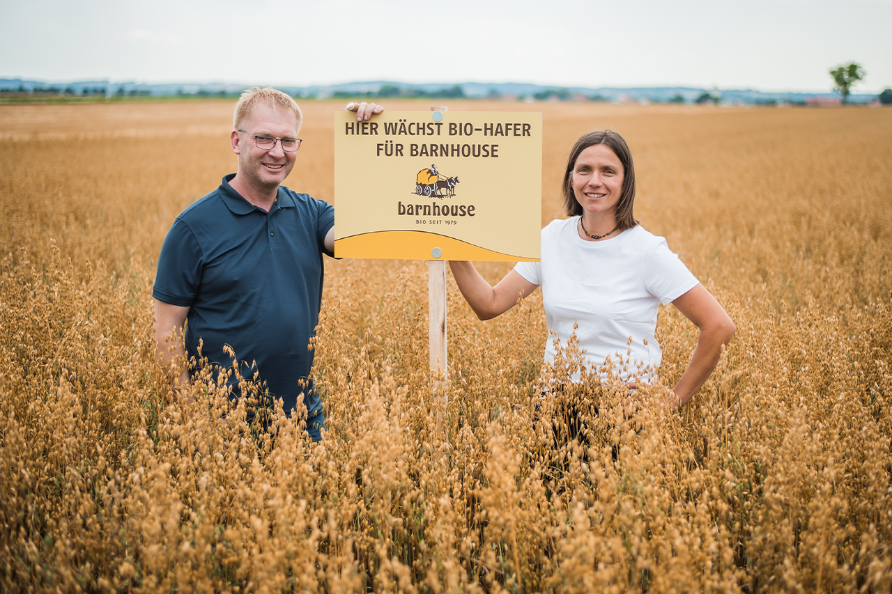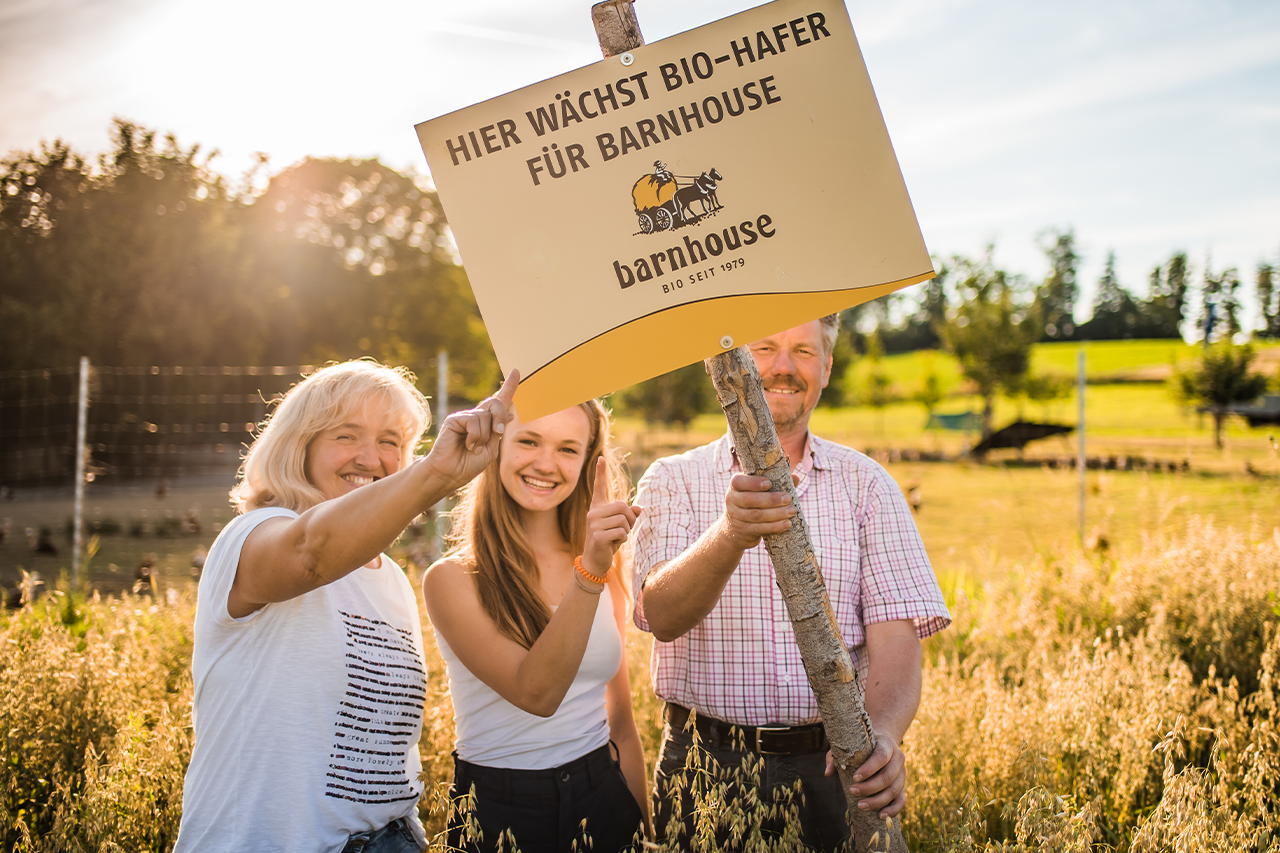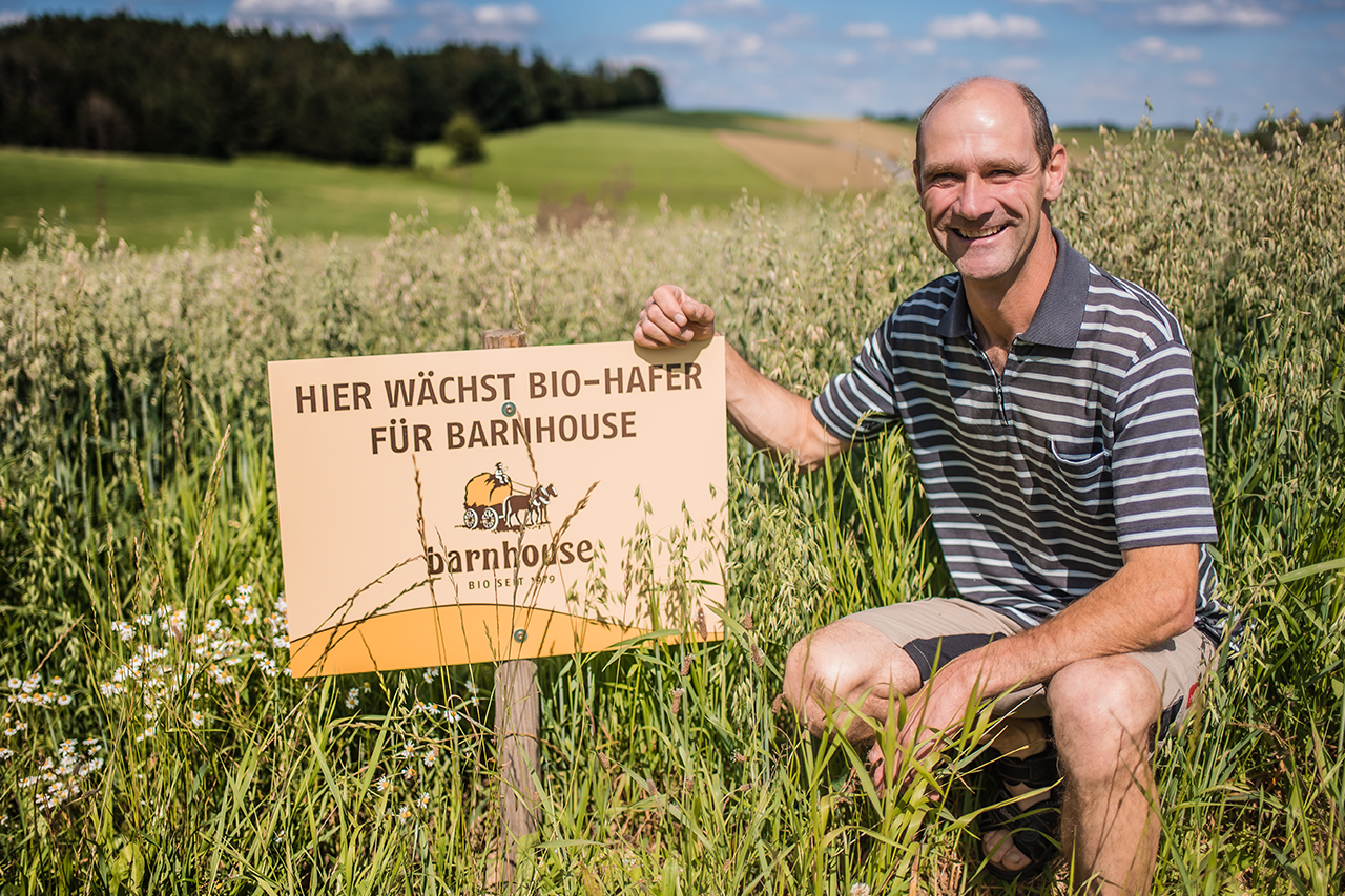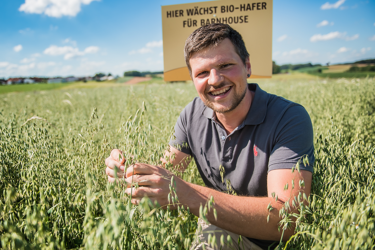 Die Hafer- und Dinkelflocken in unseren Krunchys stammen von den Feldern unserer nahezu 90 Barnhouse Bäuerinnen und Bauern aus einem Umkreis von max. 100 km, überwiegend sogar max. 50km. Wir wissen, wer unseren Hafer und Dinkel anbaut und wo er wächst.